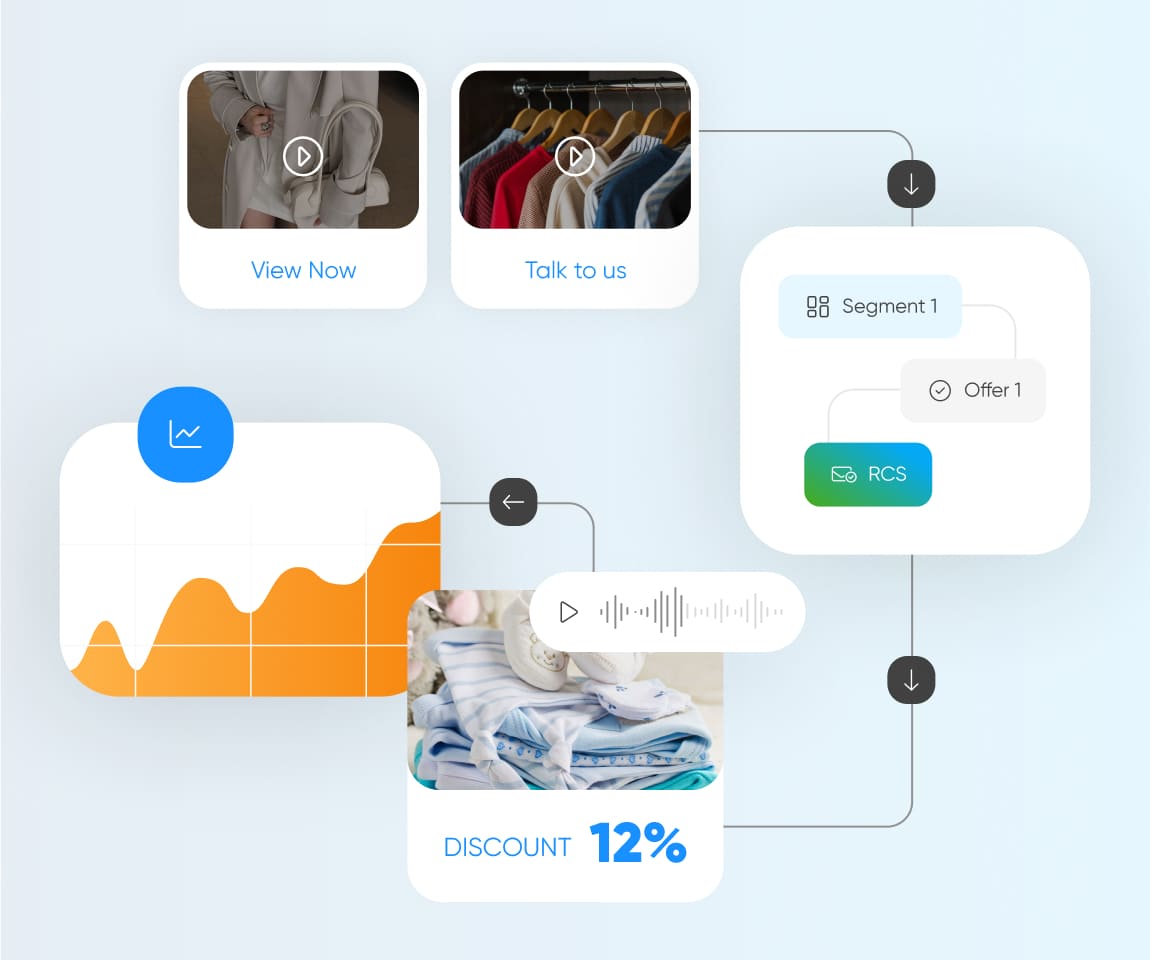 • Plan and launch multi-channel campaigns (SMS, Email, WhatsApp, Voice) from one place – no more jumping between tools.