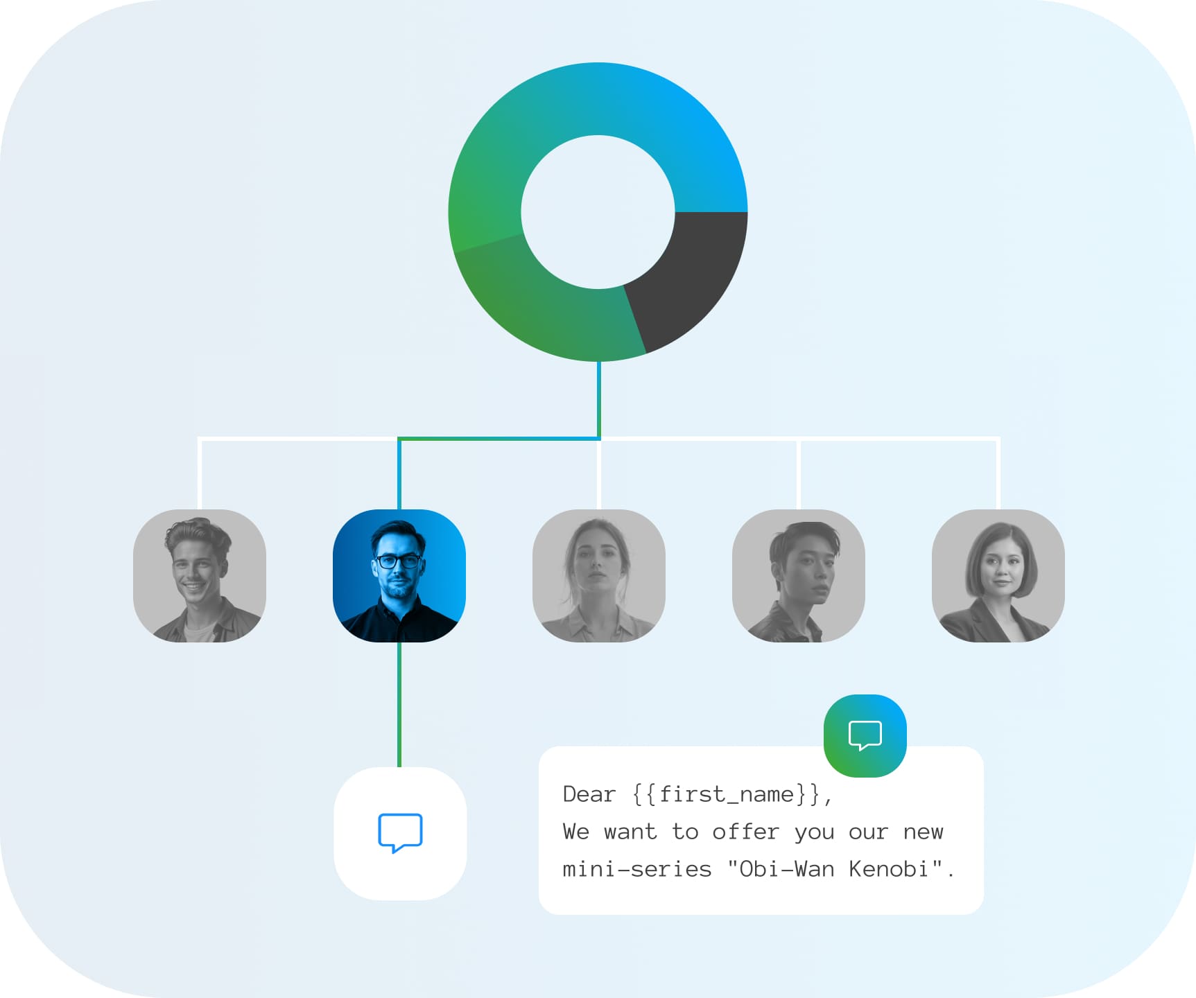 Filter your contact book by age, gender, location, or behavior. Create dynamic segments and send the right message to the right audience.
