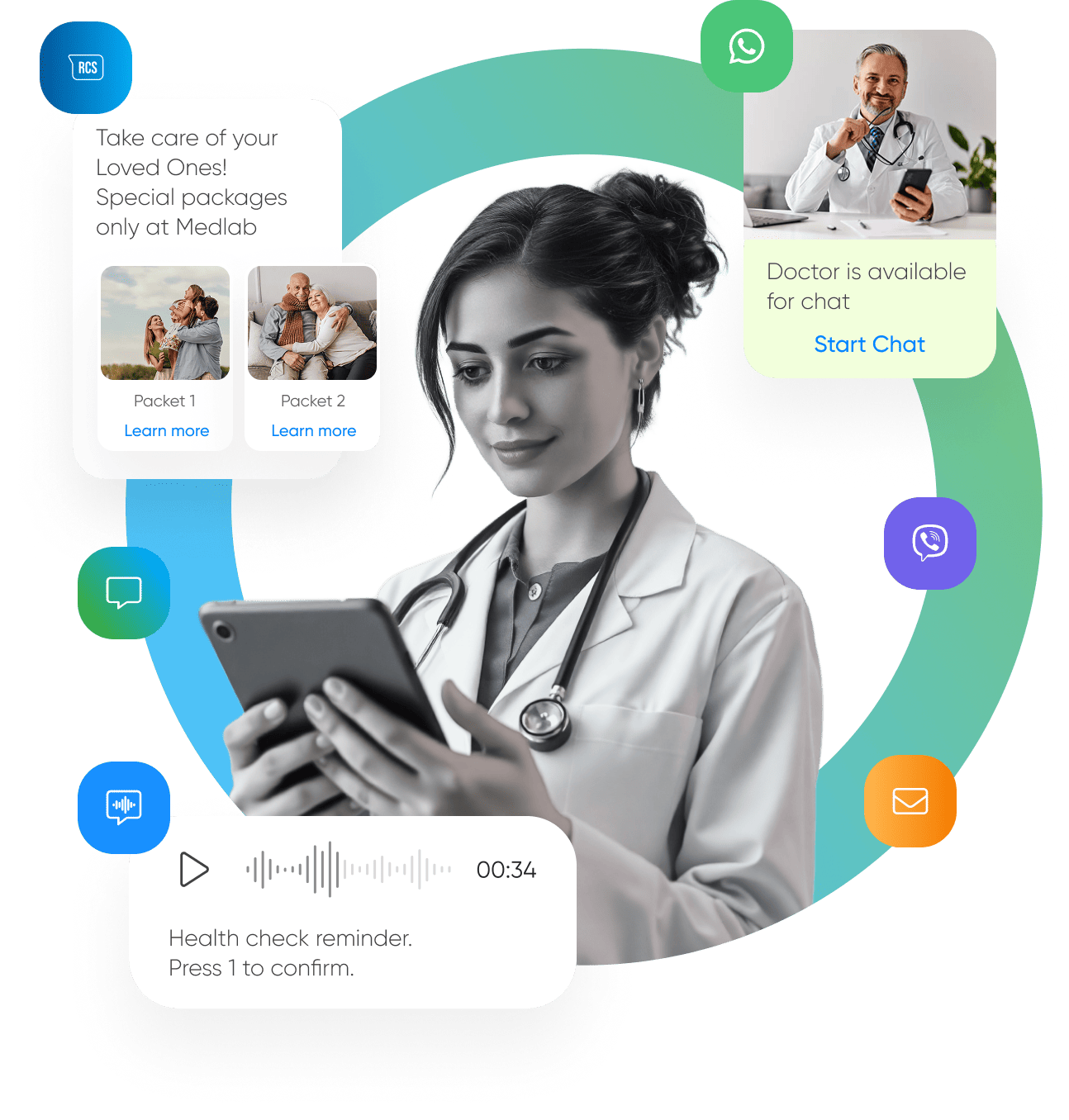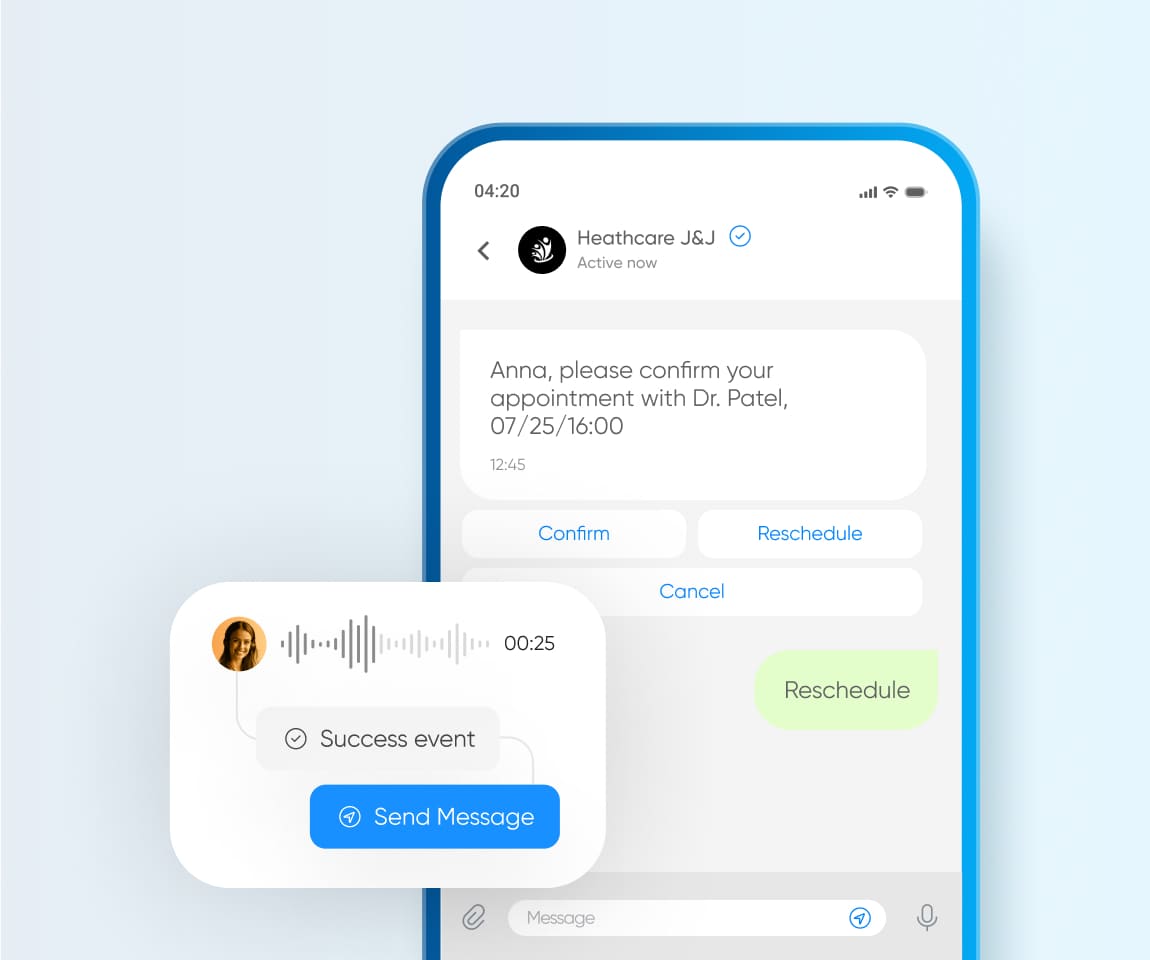 Reach patients with voice, SMS, WhatsApp, or email — all via one API